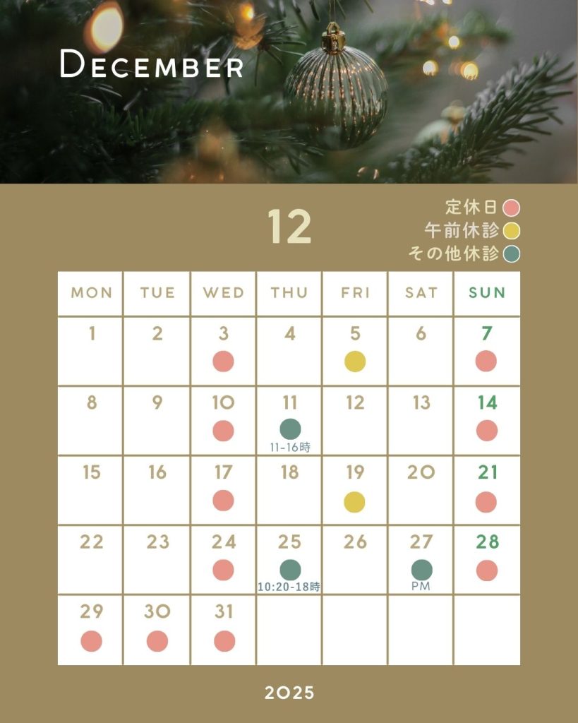 いつも越智歯科医院をご愛顧いただきありがとうございます。 12月の休診についてお知らせいたします。 年末年始は 12/27(土)午後~ 1/4(日)まで休診いたします。 ※当院にかかられたことのある方で緊急の場合は留守電にメッセージを残してください。... -